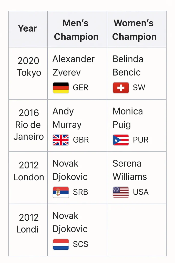 • Andy Murray (2012, 2016) → กลายเป็นตำนานชายเดี่ยวคนเดียวที่ป้องกันเหรียญทองได้